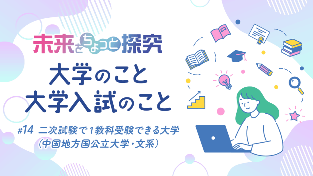 今回は「中国地方の国公立大学で二次試験1教科のみで受験できる大学特集(文系)」を見ていきましょう。