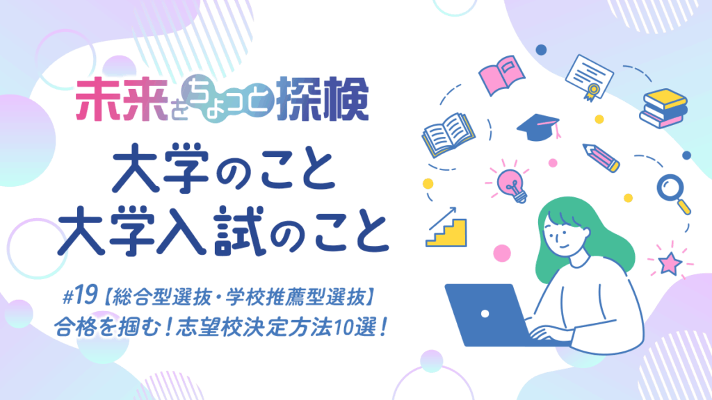 今回のテーマは「【総合型選抜・学校推薦型選抜】合格を掴む!志望校決定方法10選!です。