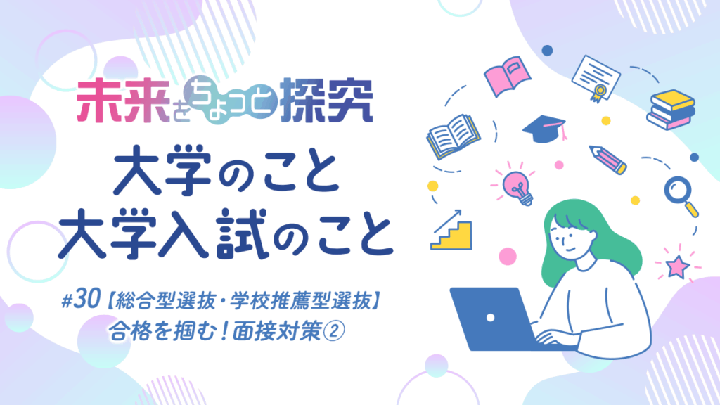今回のテーマは「【総合型選抜・学校推薦型選抜】合格を掴む!面接対策②」です。過去の記事もぜひ参考にしてください。