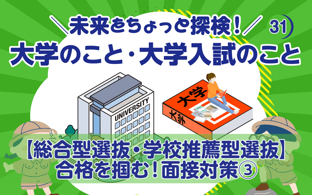 今回のテーマは「【総合型選抜・学校推薦型選抜】合格を掴む!面接対策③」です。過去の記事もぜひ参考にしてください。