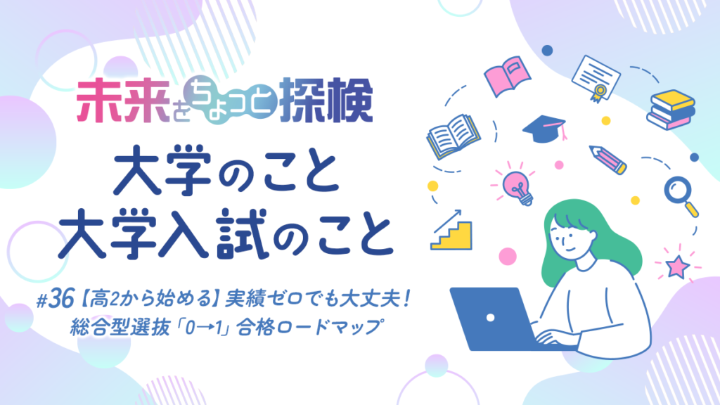今回のテーマは「【高2から始める】実績ゼロでも大丈夫!総合型選抜「0→1」合格ロードマップ」です。