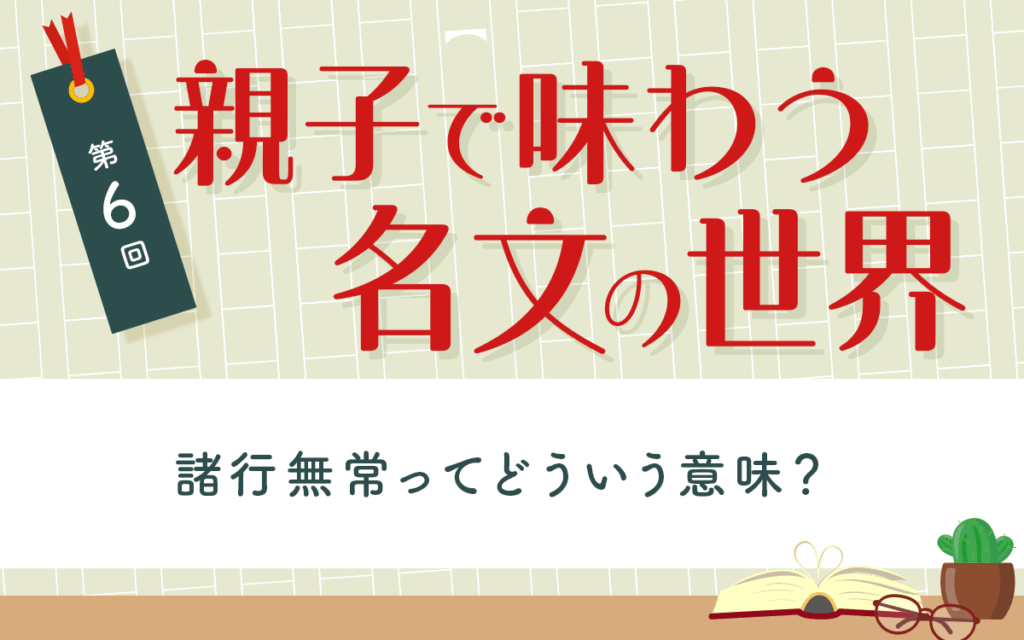 どんな四字熟語の意味が好きか、または格好がいいか、話しあってみるのも面白いですね。無常観についても、「ずっと続くものはないね」と思える事柄が身の回りやこれまでの経験でなかったか、話しあってみるのもいいですね。