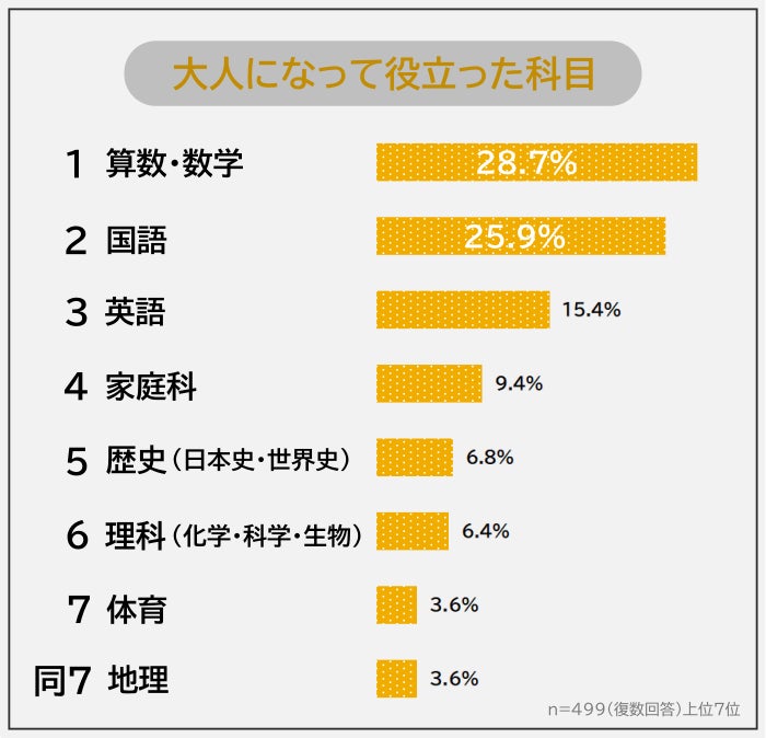株式会社R&Gのプレスリリース(2025年3月7日 10時37分)【大人になって役立った学校の科目ランキング】男女499人アンケート調査