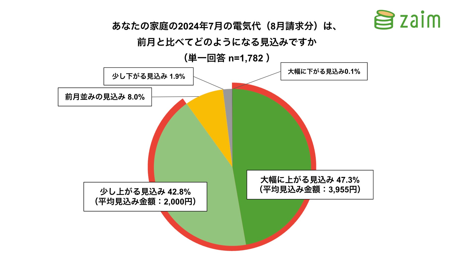 株式会社くふうカンパニーホールディングスのプレスリリース(2024年8月2日 16時34分)【Zaim調査】猛暑で2024年7月(8月請求分)の電気代は約5割が「大幅に上がる見込み」、8月再開の政府補助に期待の声も