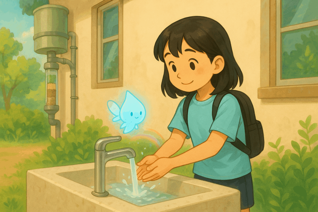 「きれいな水は、魔法じゃない。みんなの小さな行動の積み重ね――それがいちばんつよい魔法だよ。」