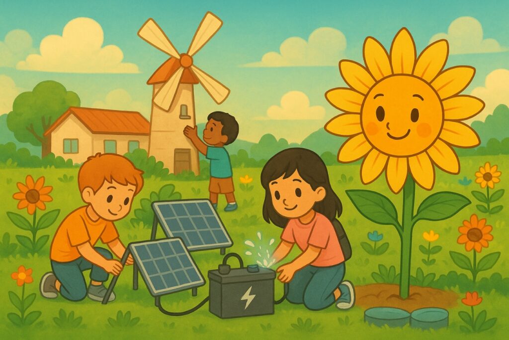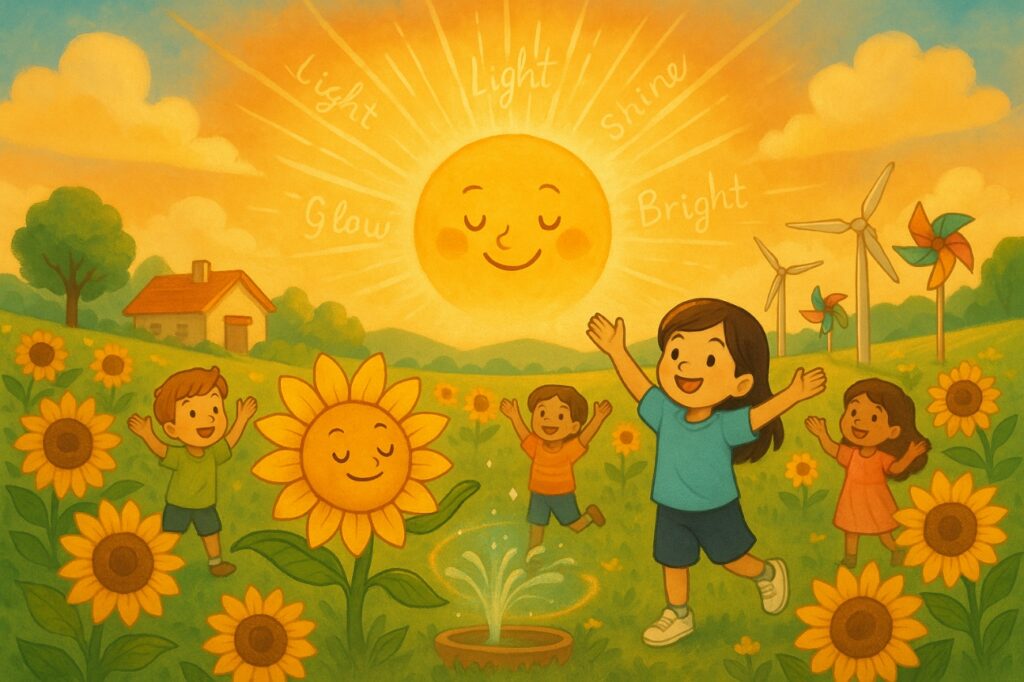 その声に応えるように、翌朝の光は少しだけ強く、風車は軽やかに歌い、パネルの上で光が跳ねました。