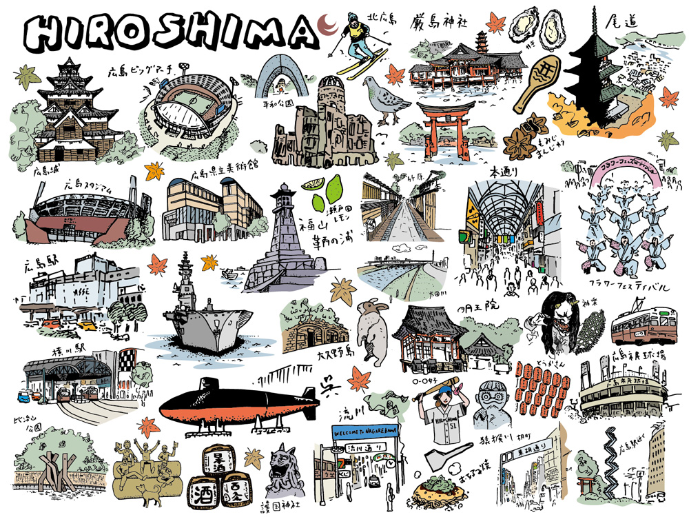 正式名は「厳島いつくしま」ですが、一般には宮島と呼ばれています。厳島神社と赤い大鳥居が世界的に有名です。世界遺産にも登録されており、多くの観光客が訪れます。宮島にはシカもいて、いっしょに写真をとることができます。